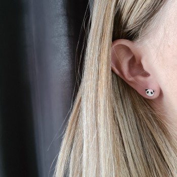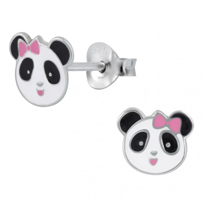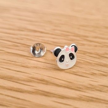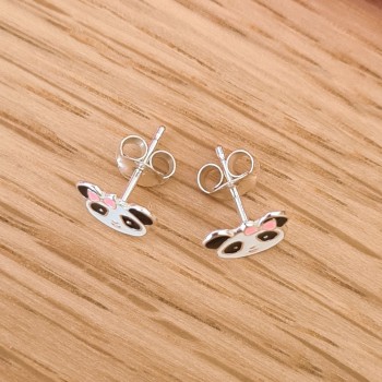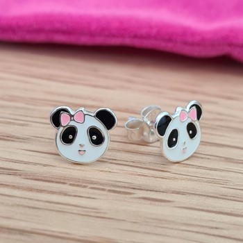 Boucles d'oreilles pandas noeud rose en argent 925 pour fille
