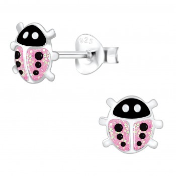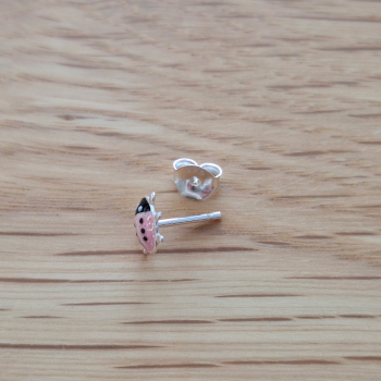 Boucles d'oreilles coccinelles roses paillettes en argent 925