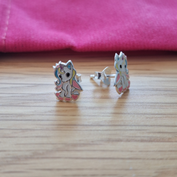 Boucles d'oreilles licorne multicolore en argent pour fille