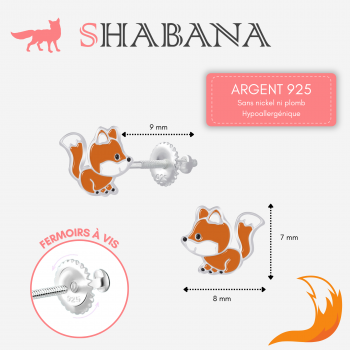 Boucles d'oreilles petit renard en argent 925 fermoirs à vis