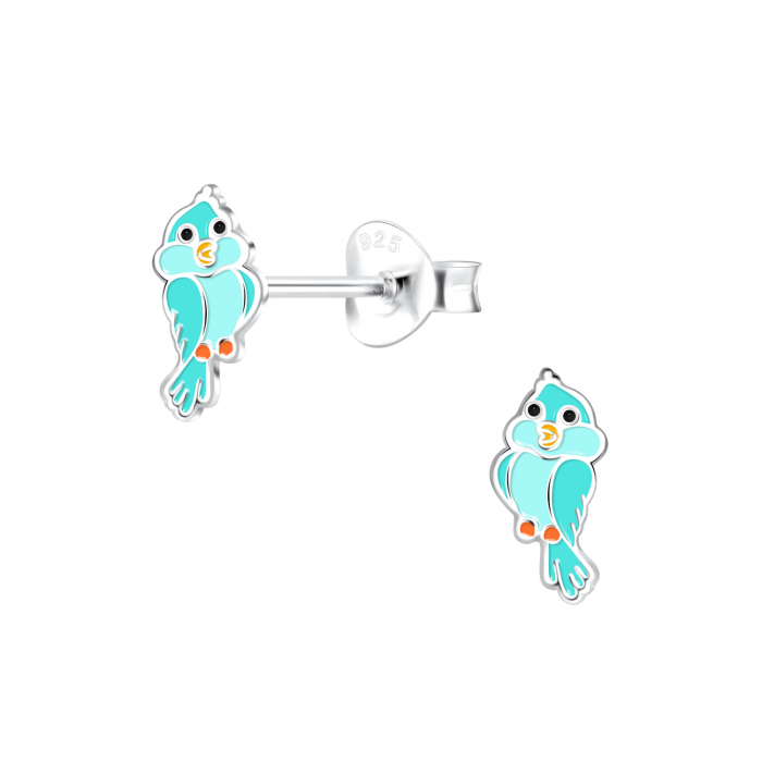 Boucles d'oreilles oiseau bleu en argent 925 pour fille