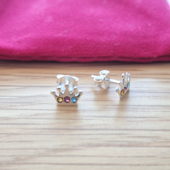 Découvrez notre merveilleuse paire de boucles d'oreilles en forme de couronne ornée de cristaux colorés, une création unique conçue pour enchanter les jeunes filles avec son élégance et sa touche de magie. Chaque détail de cette pièce a été méticuleusement pensé pour captiver leur imagination, avec des touches subtiles évoquant la royauté et la brillance des joyaux.
