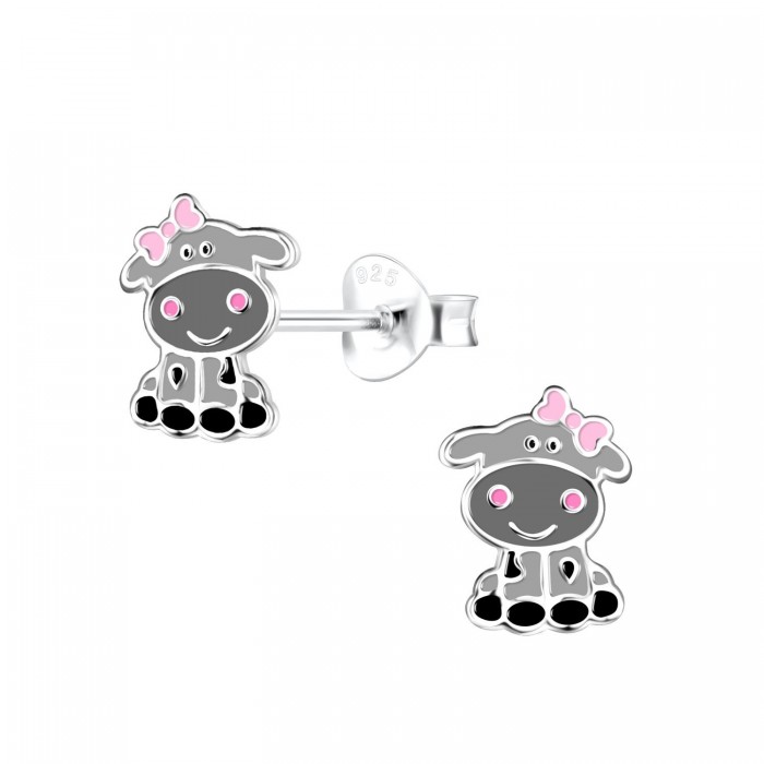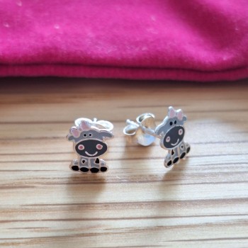 Boucles d'oreilles vache grise avec nœud rose en Argent 925 pour filles