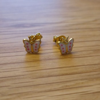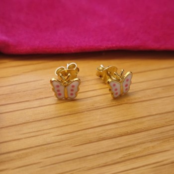 Boucles d'oreilles papillon en argent 925 plaqué or 14K