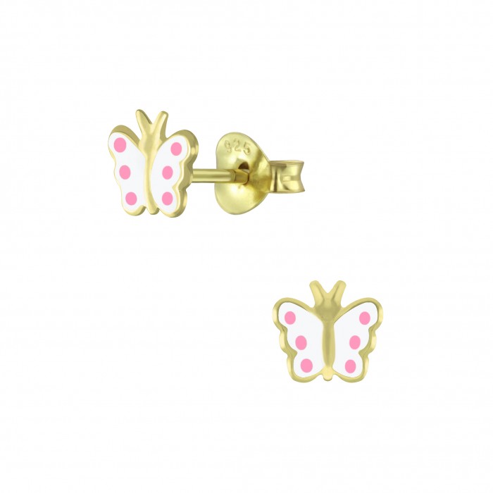 Boucles d'oreilles papillons blancs points roses en argent 925 à vis