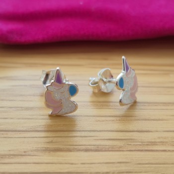 Paire de boucles d'oreilles tête de licorne en argent 925 avec attache vis