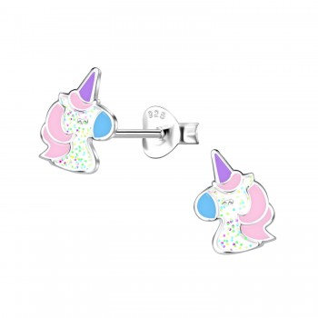 Boucles d’oreilles Licorne – Argent 925 émaillé & paillettes pastel