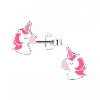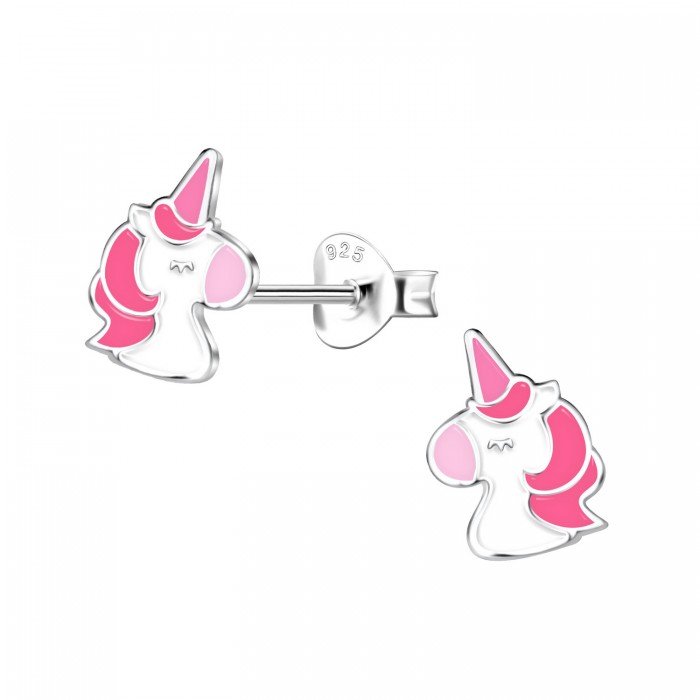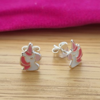 Boucles d’oreilles licorne rose pour fille – Argent 925 émaillé