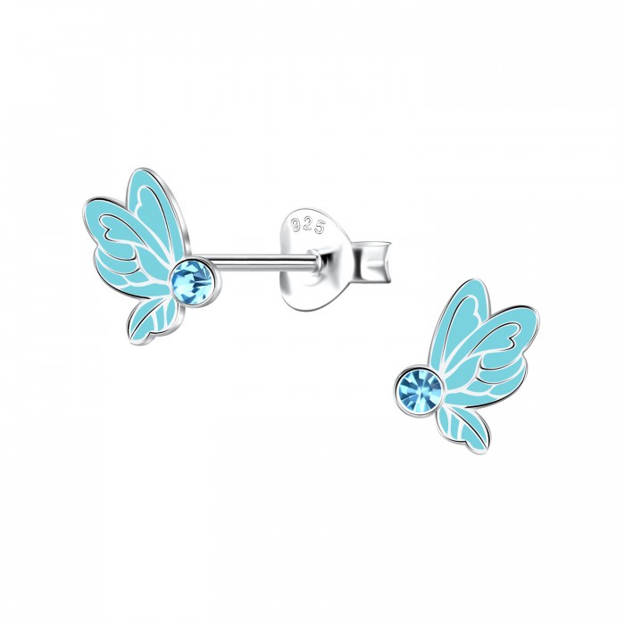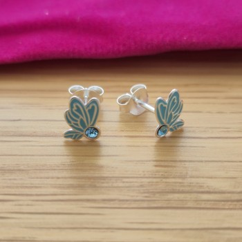 Boucles d'oreilles ailes de papillon bleu avec strass – Argent 925 pour fille