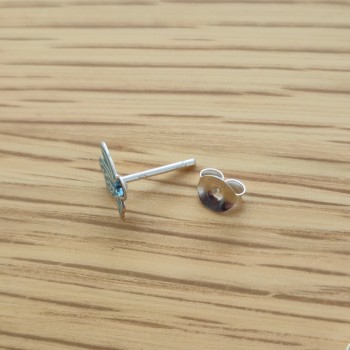Boucles d'oreilles licornes volantes violettes et ailes bleues en argent 925 à vis