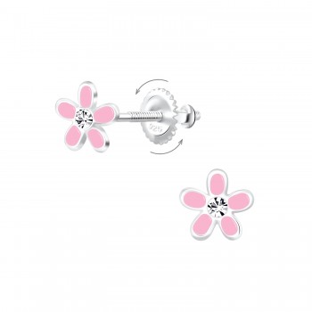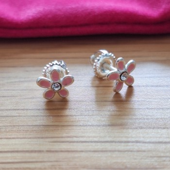 Boucles d'oreilles fleurs roses en argent 925 fermoirs à vis