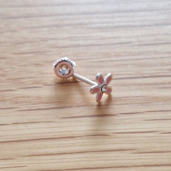 Boucles d'oreilles fleurs marguerite rose en argent 925 attaches à vis
