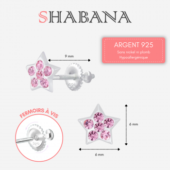 Boucles d'oreilles étoiles en argent et cristal rose fermoirs à vis