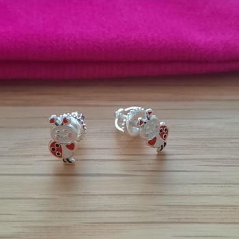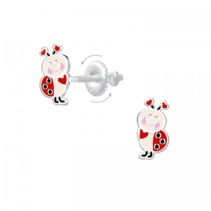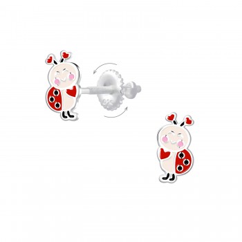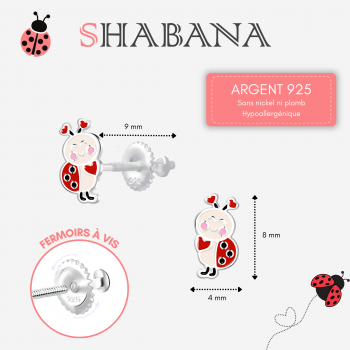 Boucles d'oreilles coccinelle enfant en Argent 925 - Attaches à vis