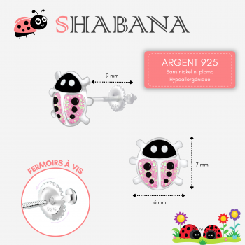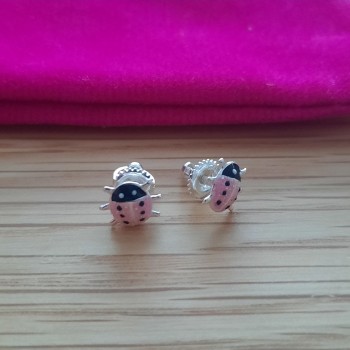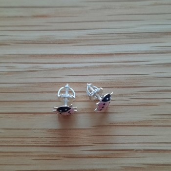 Boucles d'oreilles coccinelle enfant en Argent 925 - Attaches à vis