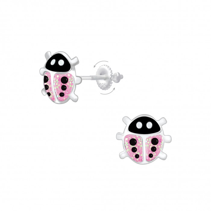 Ces boucles d'oreilles en forme de coccinelle pailletée apportent une touche de fantaisie et d'élégance aux petites filles. Fabriquées en argent 925, ces boucles avec des ailes roses scintillantes et des attaches à vis sont conçues pour offrir un confort optimal et un style amusant.