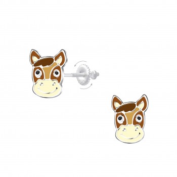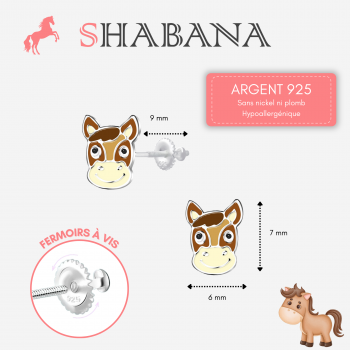 Boucles d'oreilles tête de cheval enfant en Argent 925 - Attaches à vis
